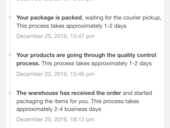 actually i ordered 4 items in Nov month two different orders for India and another one Dubai, almost 4000 inr, really am happy about service and all , i got in proper time. but in this December i ordered again almost 5000 inr products in Dec30 still showing processing order if i call or msg...