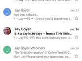 So I'm not the only one. No clue how I ended up this Jay Boyer list but from Jan 1 to 28 I received over 30 emails and several web-based requests that I didn't sign up for.